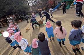 保護者参観日では、普段の園での様子を見ていただいた後、親子で遊べるゲームを行いました。