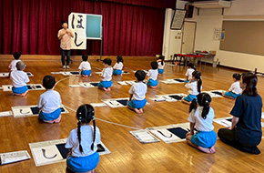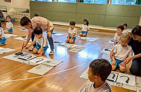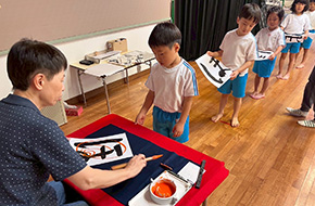 書道の先生をお招きして、年長組が毛筆に挑戦しました。