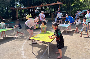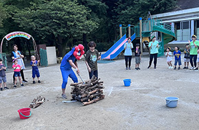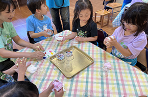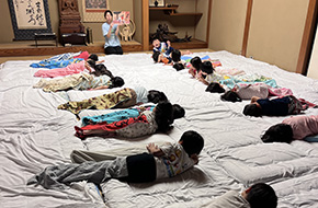 年長さんがずっと楽しみにしていたお泊まり会! 大きな体育館に出かけてたくさん体を動かしたり、ペン立ての製作、カレー作り、銭湯での入浴、キャンプファイヤー、お寺にお泊まり、ボディペインティング、、、様々な体験をしました。 お家の人と離れて、お友だちと過ごしたこの二日間が特別な思い出になっている事でしょう☆